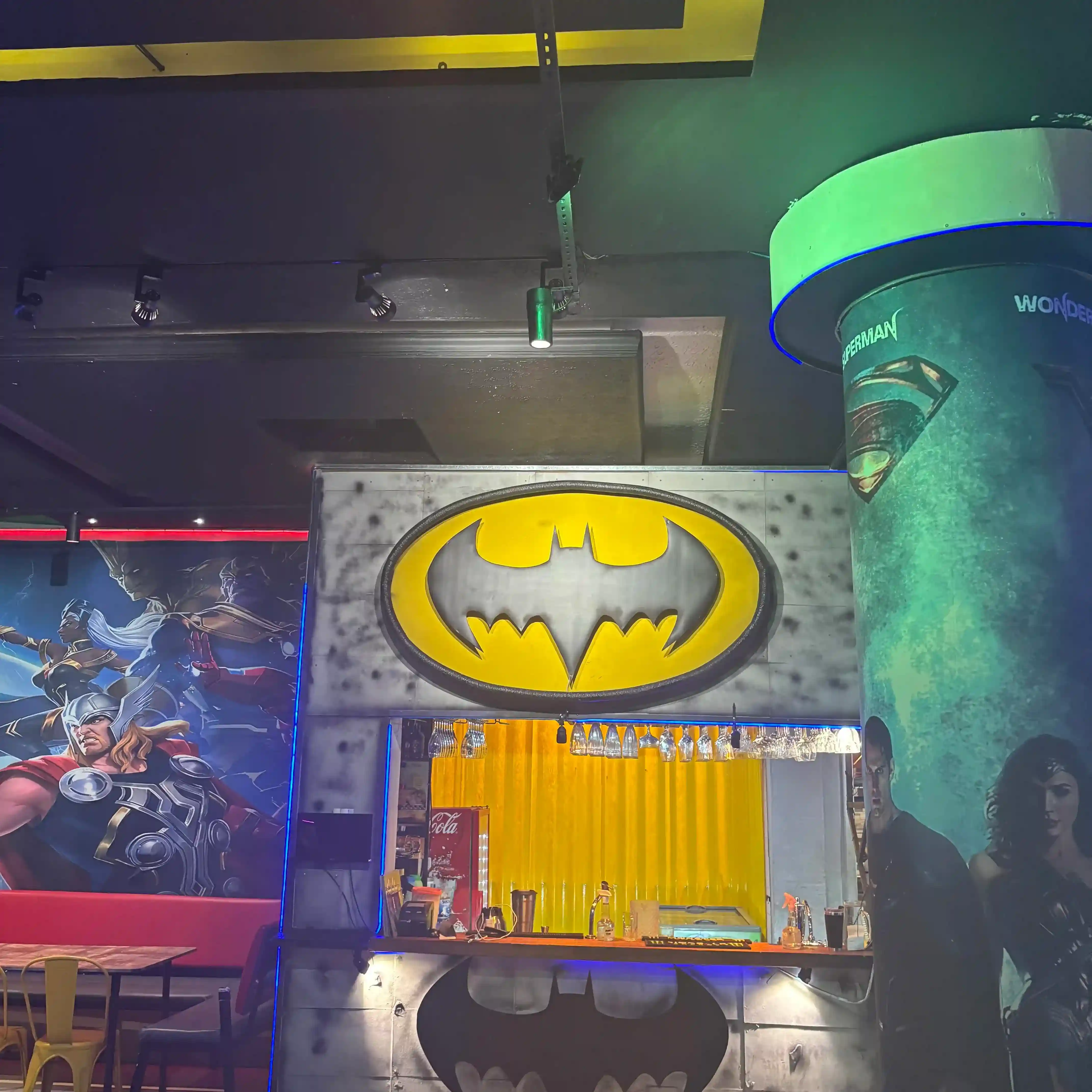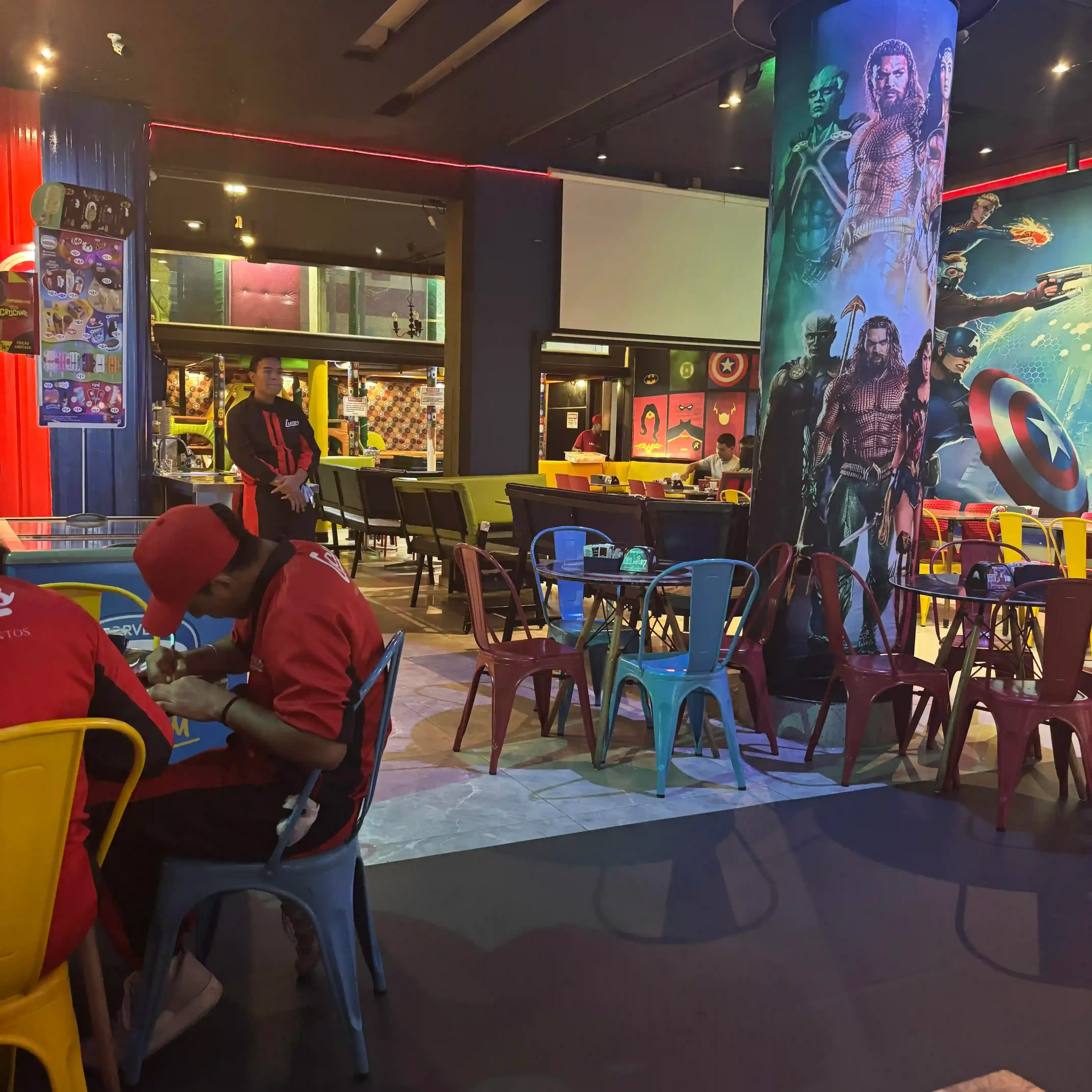 O ambiente é o grande diferencial. O lugar é todo temático com super-heróis e animes, desde as paredes até os detalhes. É um paraíso para as crianças (e para os adultos geeks). O "algo a mais" definitivo é o espaço kids, que é gratuito e bem organizado. Isso é uma mão na roda para quem vai em família e quer comer com um pouco mais de calma.